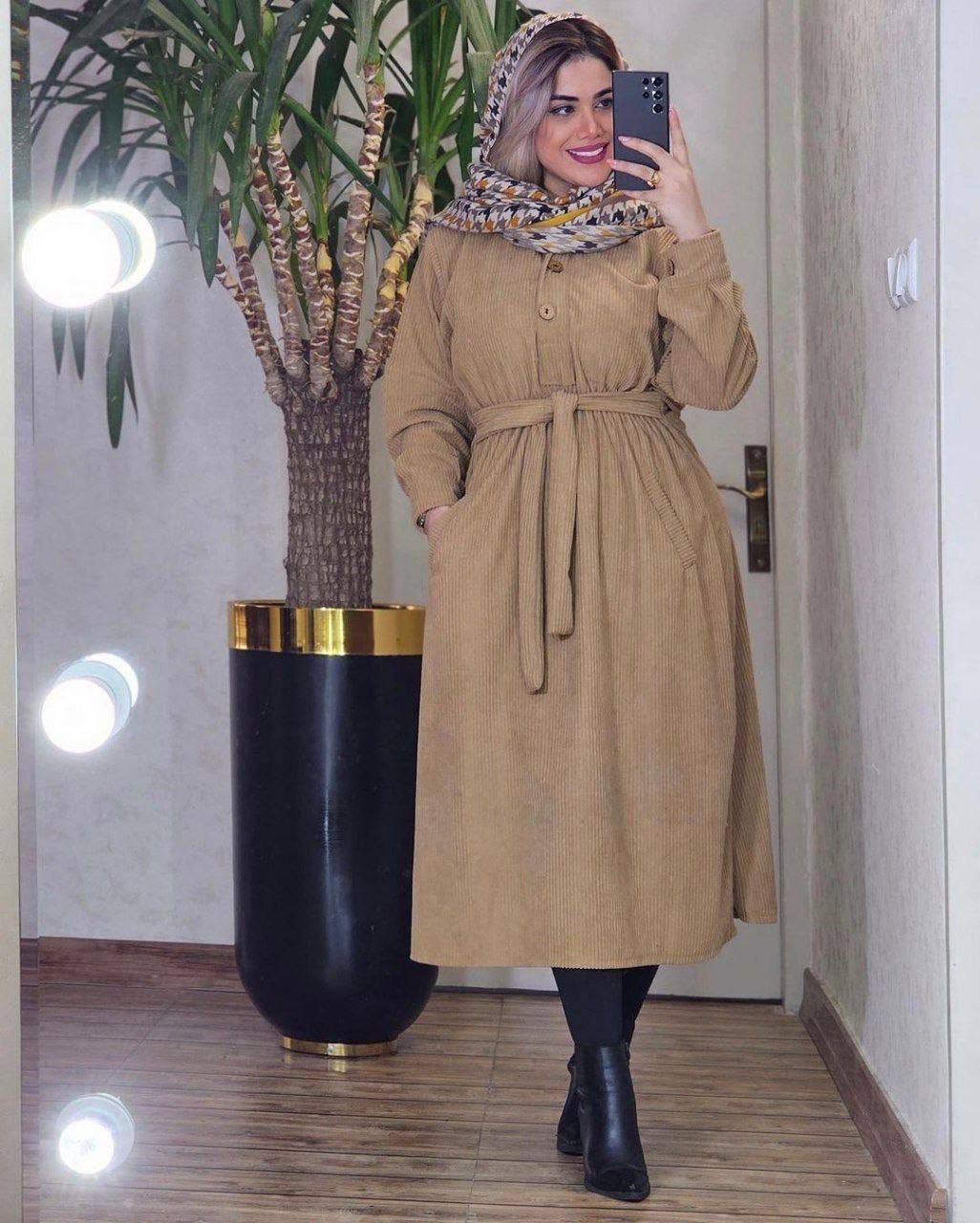 کفتانبلند کمربند دار جنس پارچه کبریتی درجه یک